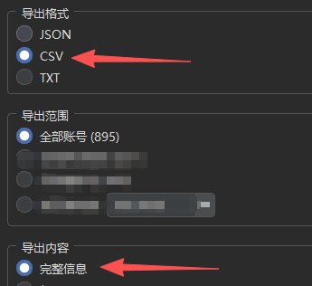 清空列表有2个功能,一个是清理列表,一个是导入csv,如果你想留底账号信息,先导出全部信息为CSV.如下图。