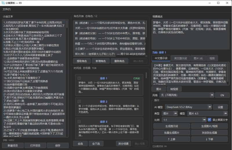 优化分镜-从[即梦生成]面板-按钮打开【分镜功能】,增加统一deep seek API设置