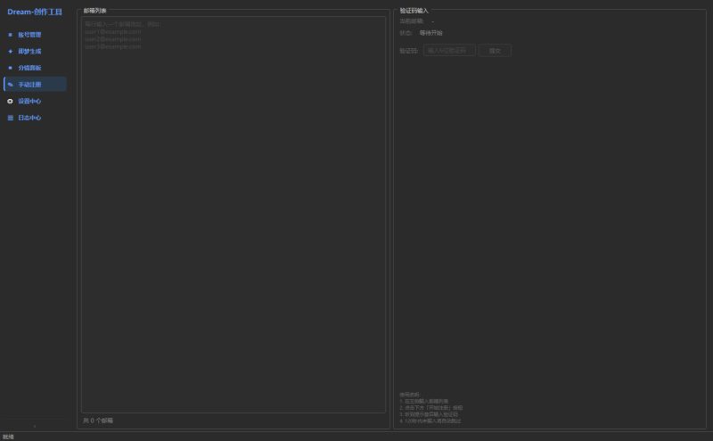 一行一个填写任意Email账号点击[开启注册]活获取验证码,自己手动填写一样可以注册账号。