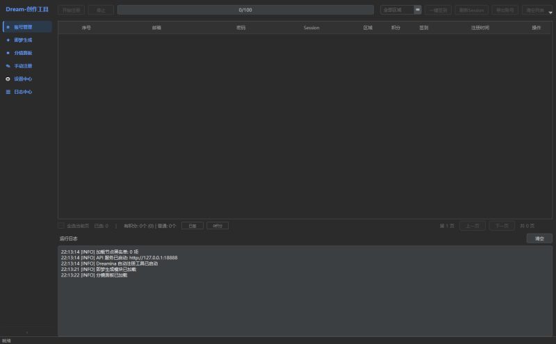 在使用面板之前请确保有积分,如前天生成的账号,你需要先进行一个区域的签到领取积分(选择一个区域进行签到这样好分类),在面板工具就可以看到类似