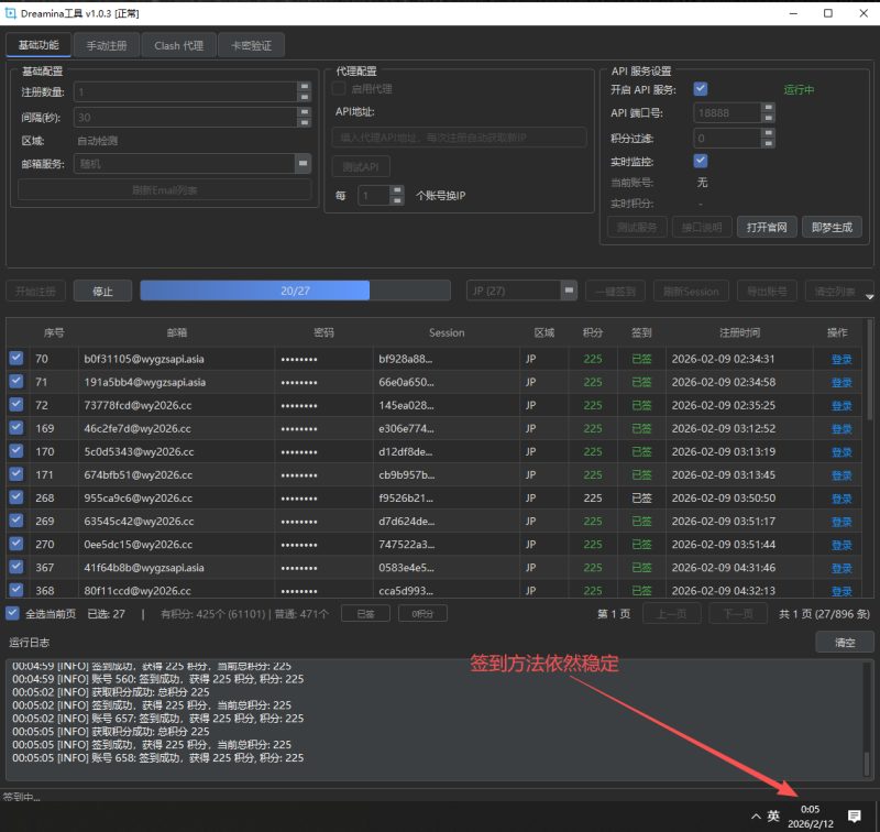 在账号列表中,右键签到,在注册过程中出现了0积分,先将任务跑完,无需担心,咨询管理员有底层逻辑解决。