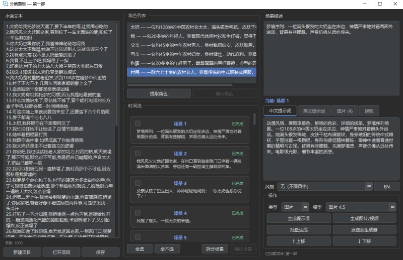 真正达到了注册-生图/视频-小说分镜角色场景提取一条龙,基本上一个人可以轻轻松松实现一部剧的制作。