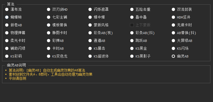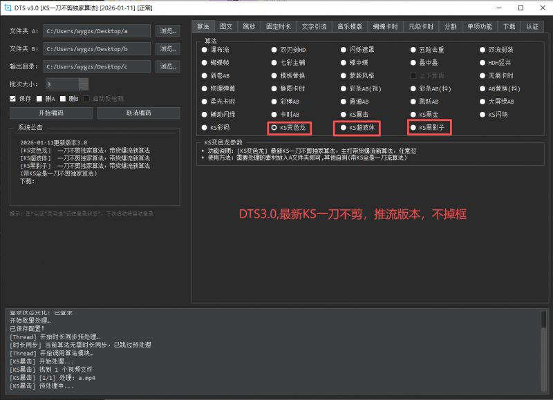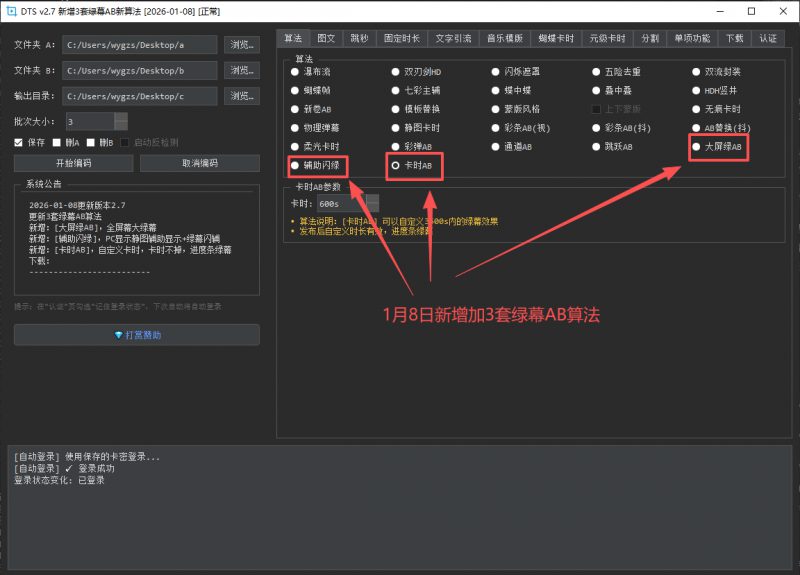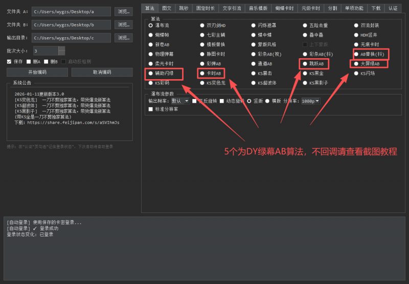 - 绿幕AB算法: 支持抖5套绿幕AB算法,包括最新KS变色龙、KS超波体、KS黑影子等独家算法,实现带货爆流新效果。