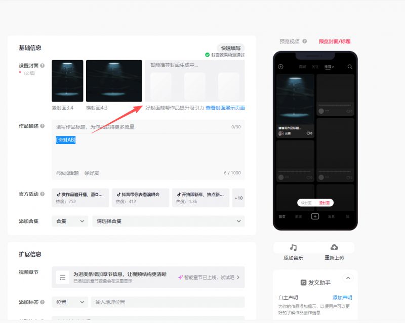 - 首次编辑素材时,请耐心等待素材检测完成。