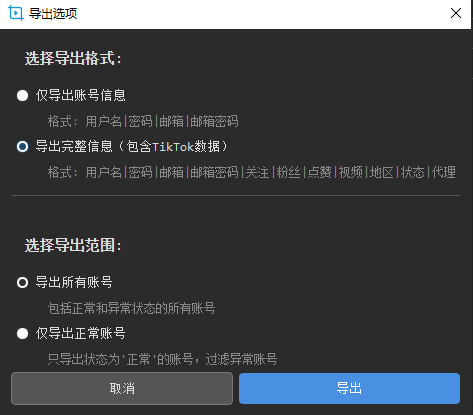 支持以下多种格式导入账号信息: