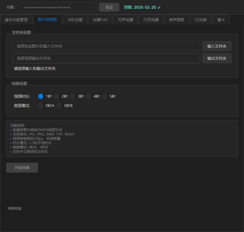 - 功能:将图片转换为指定时长的无声视频