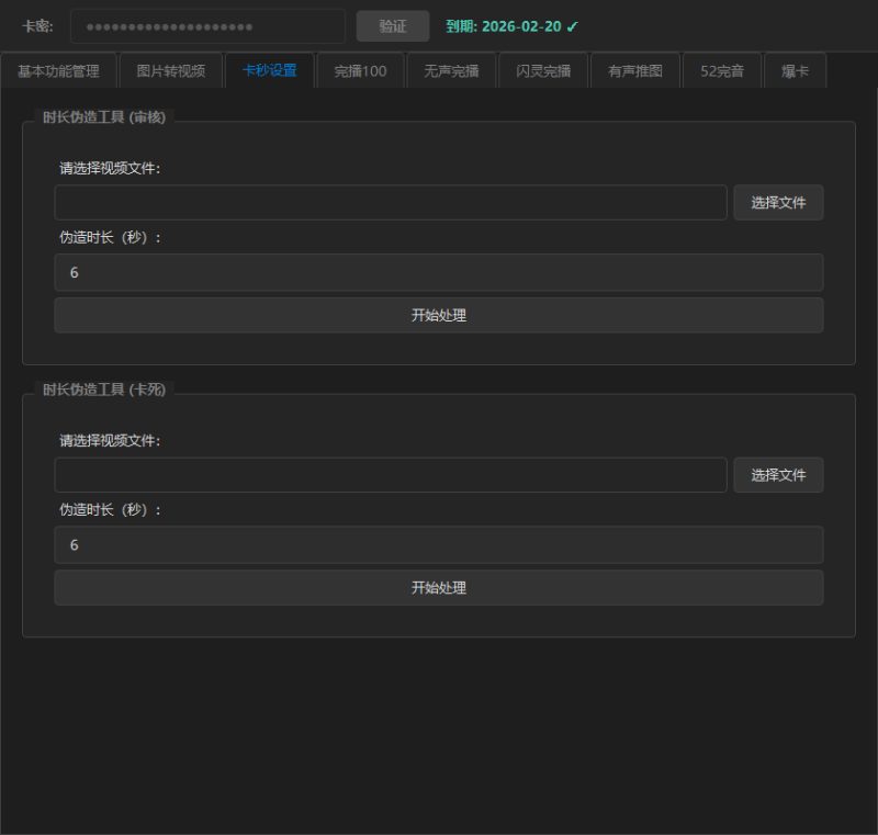 - 操作:选择需要处理的视频文件设置伪造的目标时长点击“开始处理”