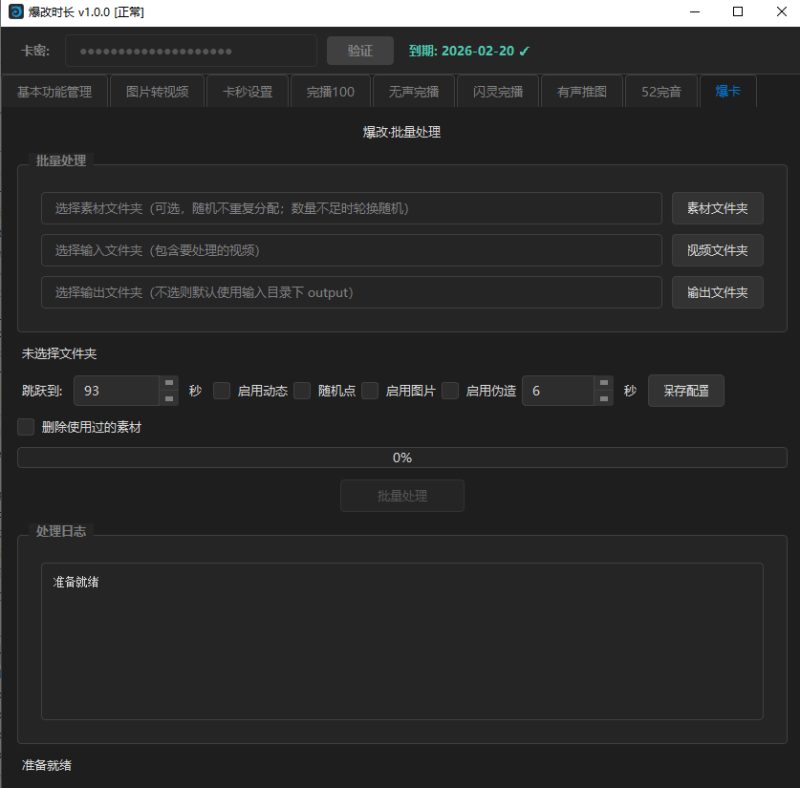 - 设置参数设置跳跃秒数可选:选择覆盖素材(视频或图片文件夹)可选:启用特殊模式